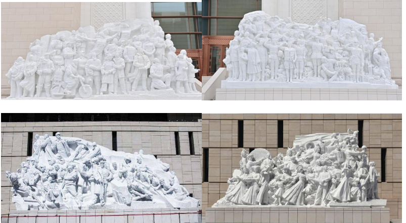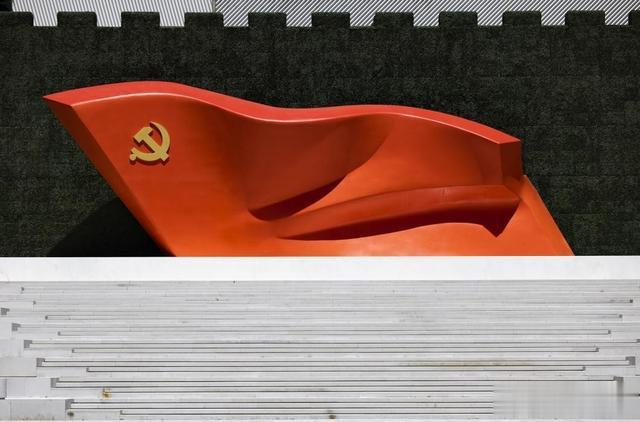 到达展览馆,首先映入眼帘的是广场上五座雄伟矗立,撼人心魄的主题雕塑。大型党旗雕塑《旗帜》气势磅礴,迎风招展、气势如虹的党旗形象,象征中国共产党意气风发的精神风貌,昭示着百年来中国共产党不忘初心、砥砺前行,团结带领中国人民从胜利走向胜利的伟大征程。《信仰》《伟业》《攻坚》《追梦》四组大型雕塑,人势与山势相依,塑造出巍峨挺拔、众志成城的意象,生动记录了党团结带领中国人民进行伟大斗争、建设伟大工程、推进伟大事业、实现伟大梦想的奋进史诗,无言讲述着党一百年来中国共产党人筚路蓝缕、艰苦创业,为人民谋幸福、为民族谋复兴的奋斗历程。同学们神情庄重,依次有序步入中国共产党历史展览馆这座呈“工”字形的恢弘建筑。