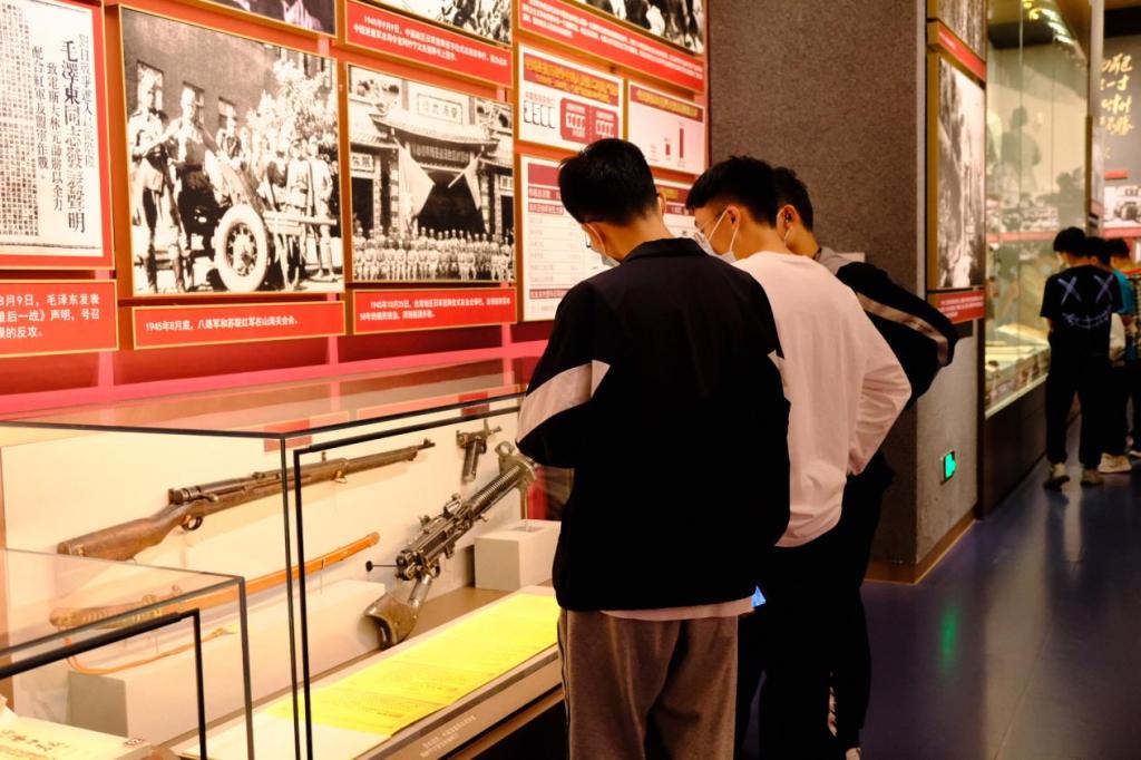 走进展厅,时光的闸门徐徐打开,同学们首先来到了“建立中国共产党-夺取新民主主义革命伟大胜利”这一部分的展览。一张张图片、一件件文物再现着中国共产党波澜壮阔的革命奋斗史、淬炼升华的精神锻造史。一座座雕塑、一个个场景将同学们带回那个风雨如晦的年代,让同学们切身体会到中国共产党领导人民进行革命战争的正义、艰辛和伟大。