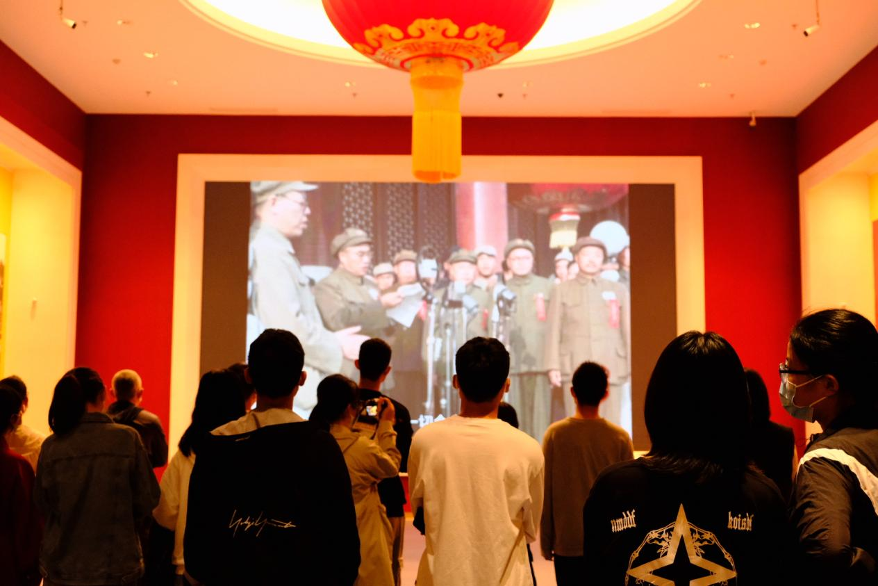 第一部分参观结束后,同学们进入后三个部分的展览,情绪逐渐变得明快而自豪。新中国建立以后,党带领中国人民一步步从“站起来”走向“富起来”和“强起来”。从建立社会主义社会制度、实行改革开放到步入中国特色社会主义新时代,一件件文物实物、一张张照片图画,见证着中华民族的强国和复兴之路,诠释着中国共产党以人民为中心的价值立场。一路观览,党的壮阔历史与伟大精神激荡着每位参观者的心,同学们感触深刻,为这百年浩荡征程心潮澎湃,为自己所处的伟大时代深感自豪。