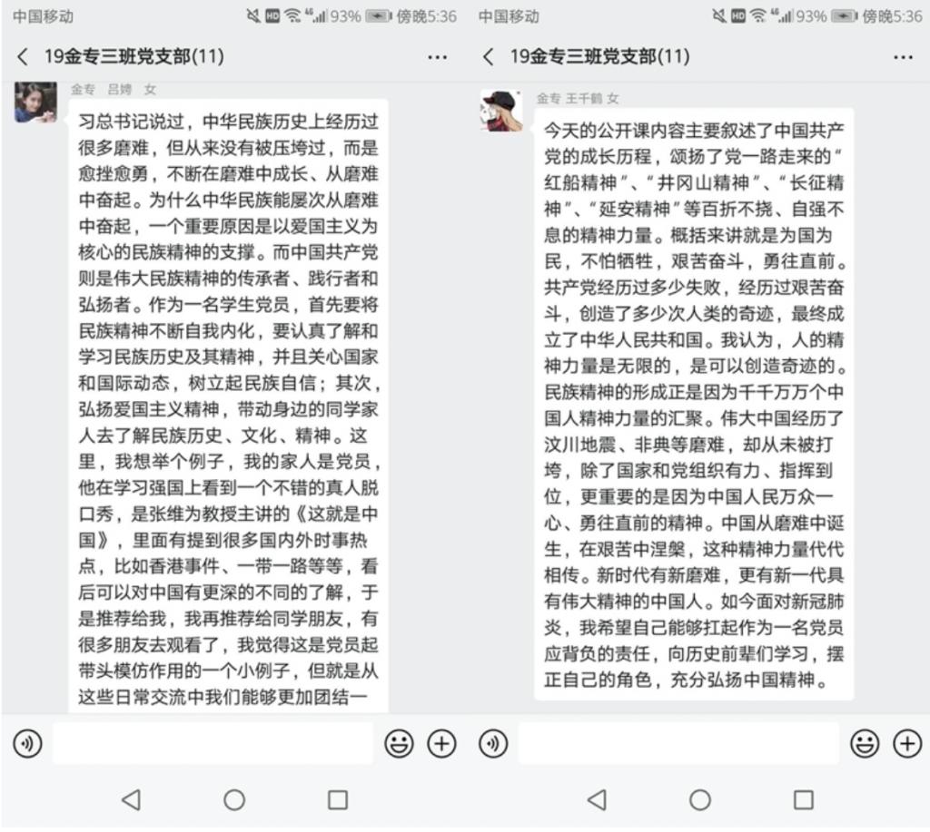 3月14日下午,2019级金融专硕三班党支部举行了线上主题党日活动,共同学习由王炳林教授主讲的“在经历中学习——疫情防控公开课”第五讲,并分享了自己的学习心得。学习公开课后,支部同志们感慨良多,正是由于党始终全心全意为人民服务,疫情当头,才能在关键时刻动员人民、依靠人民一起共抗疫情,取得胜利。