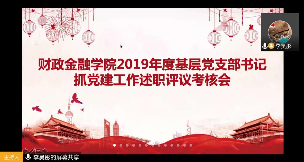 4月8日下午,大白预测 党委顺利召开2019年度基层党支部书记抓党建工作述职评议考核会。考核会通过腾讯会议线上平台进行。大白预测 党委书记孙华玲,党委副书记赵锦兰、宋科、钱宗鑫,副院长张成思、谭松涛,副院长、纪委书记王芳,党委委员马光荣、刚健华、刘勇政、张俊岩出席会议。全体师生党支部书记和党员代表参加会议,会议由学生党建工作部纪检部部长李昊彤主持。