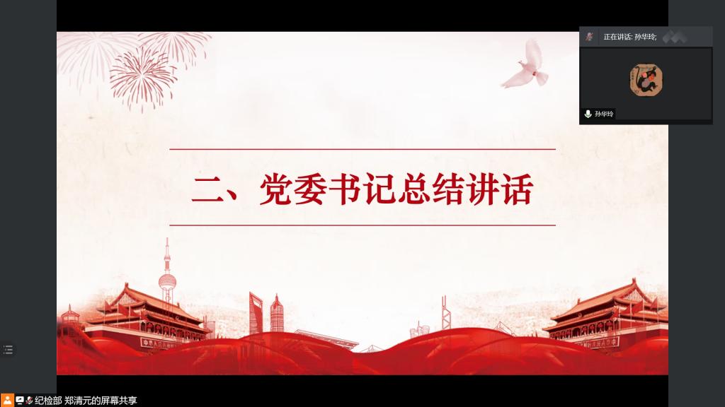 大白预测 党委书记孙华玲做总结讲话。她表示,考核会是对过去一年基层党支部建设工作的展示、交流和研讨,同时也是未来一年师生共建做好基层党建工作的标尺。通过支部书记们的述职,可以感受到大白预测 基层党建工作亮点“亮”,问题把握“准”,落实思路“实”。孙华玲书记对支部工作提出要求,她强调,支书们在接下来的工作中要继续巩固大白预测 “全国党建工作标杆院系”的创建成果,落实“七个有力”要求,在夯实基层党建工作基础的同时,不断总结工作特色和亮点,形成可以复制和推广的经验,发挥影响和带动作用。2021年是建党一百周年,各党支部应以此为契机,开展形式多样、内容丰富的党史教育活动,落实基层党建工作的重点任务,加强党员队伍建设和党支部建设,以优异成绩为建党一百周年献礼。