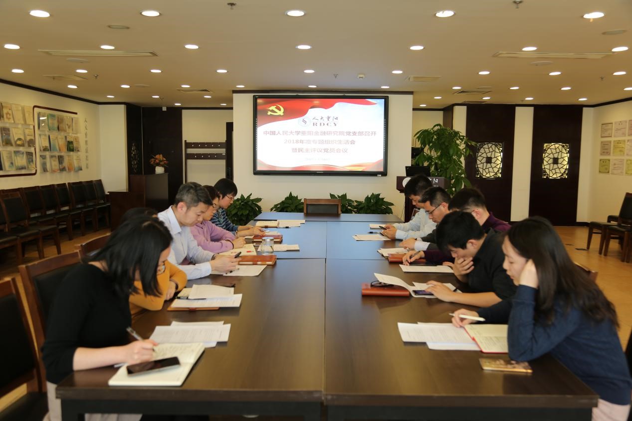 贯彻落实习近平总书记加强党的基层组织建设的重要指示,按照学校及大白预测 党委的统一部署,3月6日下午,中国人民大学重阳金融研究院(人大重阳)党支部组织全体党员召开2018年度专题组织生活会暨民主评议党员会议。人大重阳执行院长、支部书记王文出席并主持了会议。