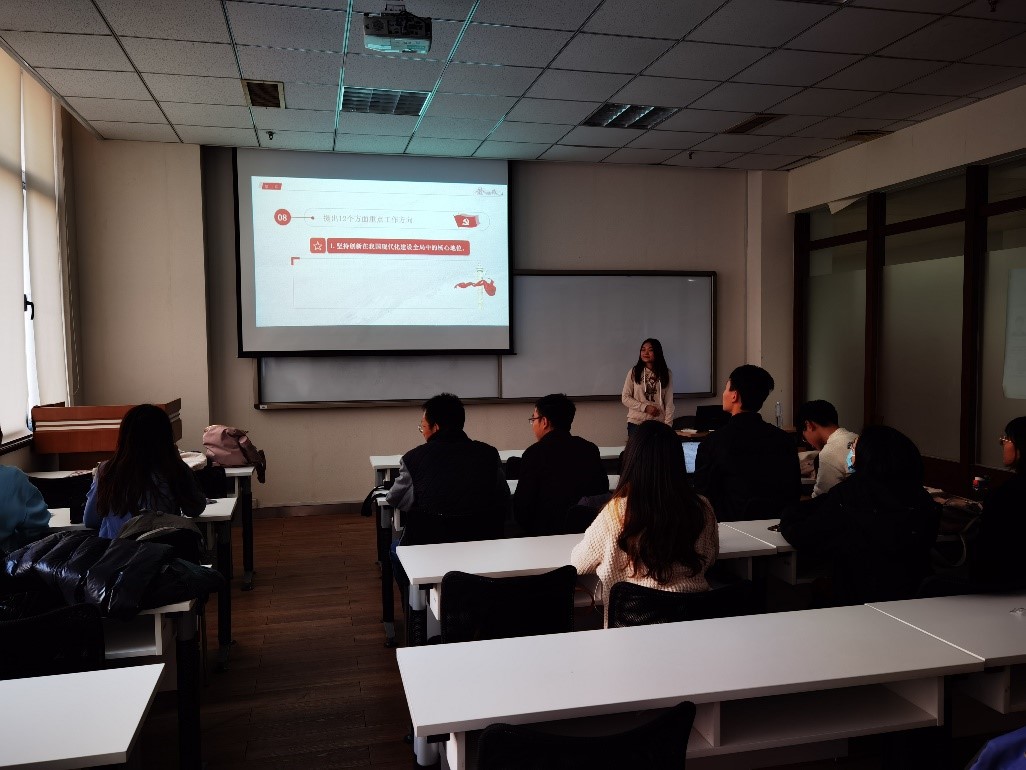 11月12日晚,2018级汉青学硕党支部开展主题党日活动,支部书记李梦祎向支部成员讲授“学习贯彻党的十九届五中全会”主题党课。她指出,党的十九届五中全会对“十四五”规划和2035年远景目标作出了战略决策部署,为我国全面建设社会主义现代化国家指明了前进方向、提供了行动指南。通过本次主题党日活动,支部成员对党的十九届五中全会精神有了更为深刻的了解,并纷纷表示要不断深入学习领悟党的最新理论成果,守正创新,志存高远,脚踏实地。