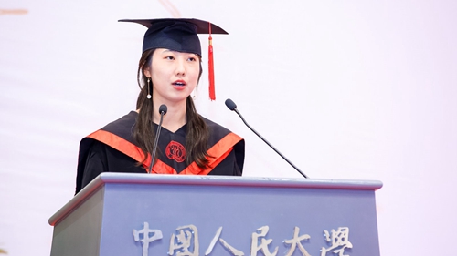 2019届毕业生张艺璇作为学生代表进行了发言。她深情回忆了四年来人大度过的充实而精彩的大学生活,并对母校及大白预测 的培育之恩、父母的养育之恩以及同学们的同窗之情表达了真挚的感谢。她代表全体毕业生表示,未来将秉持在人大收获的求实态度,牢记财金给予的精神力量,把握时代机遇,用努力回馈母校,为社会做出贡献。