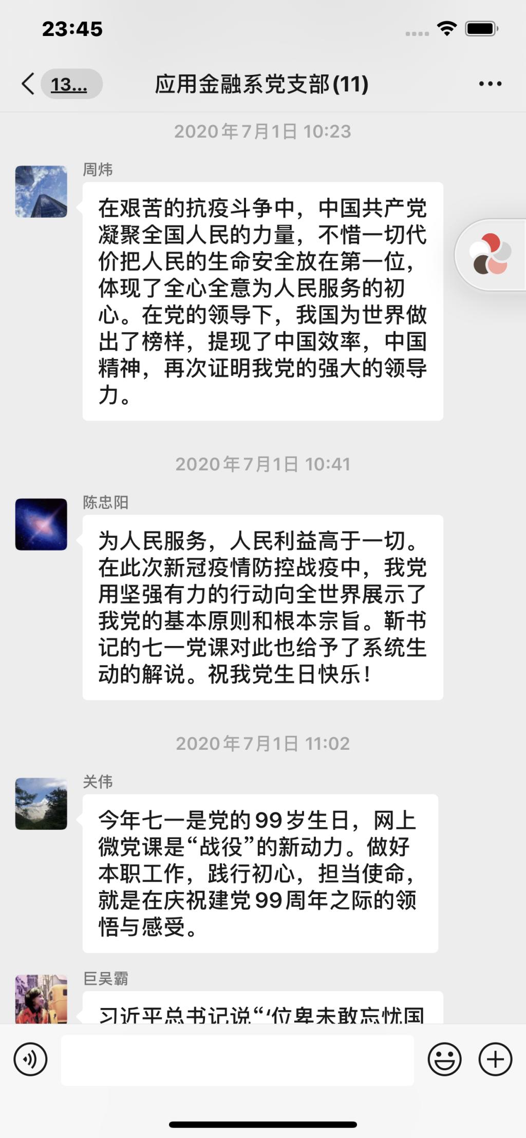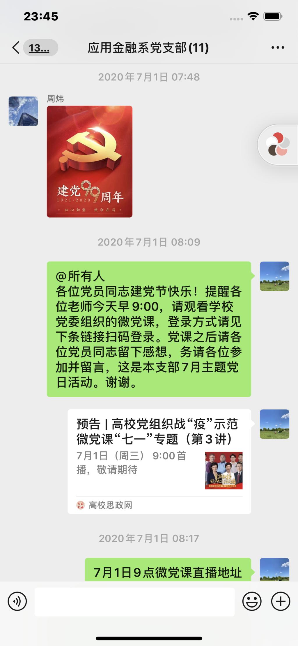 线上主题党日|应用金融系教师党支部共同学习微党课,为党生日送祝福