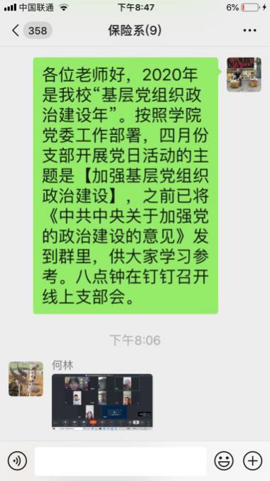 线上主题党日 | 保险系教师党支部交流学习体会,分享工作心得