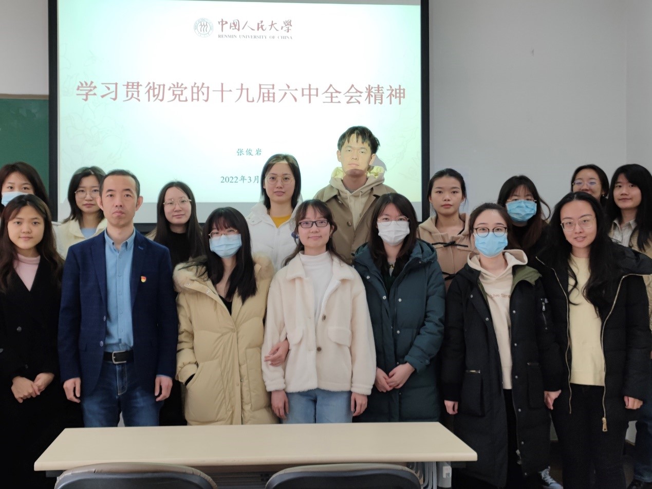 在2020级保险专硕党支部、2020级金融专硕三班党支部、2021级保险专硕党支部三个学生党支部共建活动的现场,党委委员张俊岩以老一代党员的事迹和人大校史鼓励青年党员“读原著、学原文、悟原理”。他表示,面对新时代前所未有的宏阔课题,青年党员应认清历史方位,把握历史规律,更加坚定、更加自觉地践行初心使命,在新时代更好地坚持和发展中国特色社会主义。