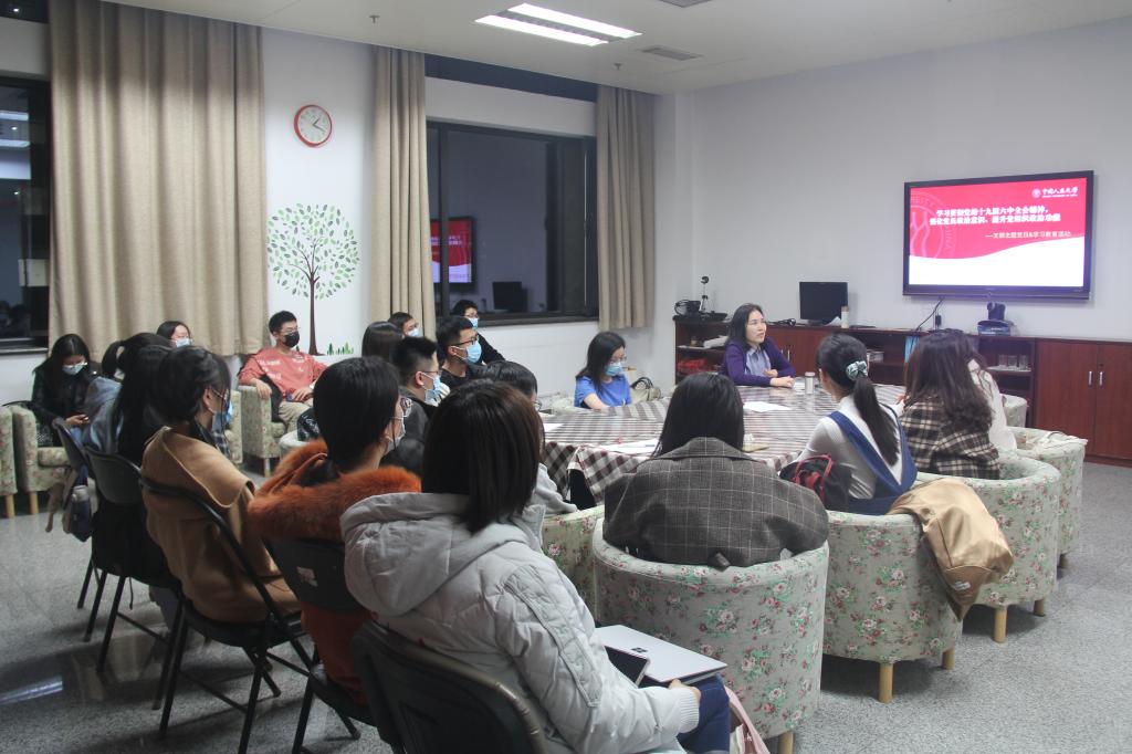 党委书记孙华玲在行政第一党支部、行政第二支部作宣讲,结合行政管理工作的重要性,强调全体党员要深入学习贯彻党的十九届六中全会精神,用全会精神武装头脑、指导实践、推动工作,聚焦“独树一帜”奋斗目标,贯彻落实立德树人根本任务,切实把十九届六中全会精神落到实处,转化为全力推进“双一流”建设的实际行动,鼓足干劲,乘势而上,奋力谱写大白预测 高质量特色发展新篇章。