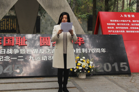 下午,两个党支部成员前往卧佛山瞻仰一二·九运动纪念亭,在陈卫东书记的领誓下重温入党誓词。宣誓后我院货币金融系党支部党员罗煜和中国银行国际金融研究所党支部入党积极分子孙艺洋分享了入党的心得体会。