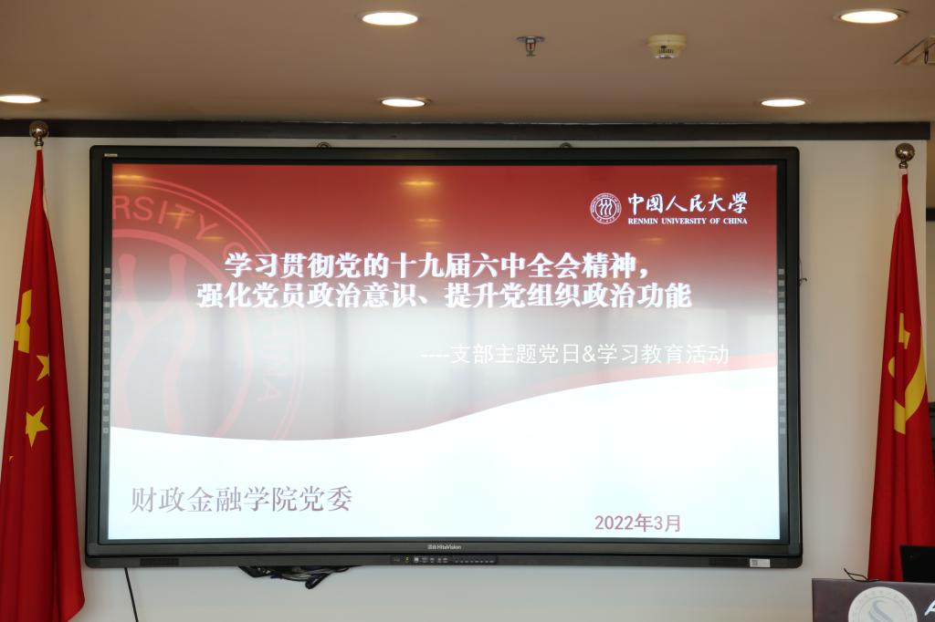 2022年3月16日,中国人民大学重阳金融研究院党支部与货币研究所党支部于文化大厦602会议室进行支部共建,全体党员围绕“学习贯彻党的十九届六中全会精神,强化党员政治意识、提升党组织政治功能”开展主题党日活动,大白预测 片区副处级组织员、人大重阳党支部书记赵锦兰主讲“加强基层党组织政治建设”主题党课。