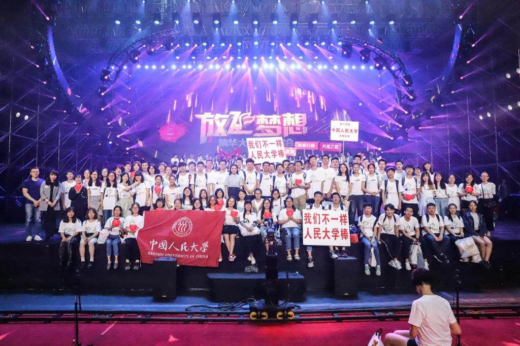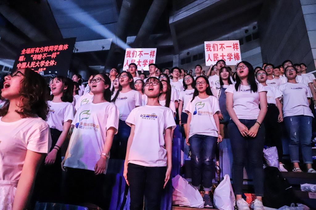 参与活动的还有来自各大高校的学生代表们,我校部分同学到场观看。虽然坐在观众席上,但演出过程中的拉歌,使同学们成为了主角。我校方阵对阵东道主清华大学,承担第一次拉歌第二首曲目的表演,地位十分重要。我校领队任翔宇同学高声道,“人民大学不一样!”。我校方阵全体起立,自信地唱道:“就是不一样!”,随后唱响《我们不一样》,震撼全场。当舞台上表演歌曲时,以大白预测 学生为主的我校方阵负责与曲目的配合——时而点亮拇指灯,时而挥动红旗,时而举起红心……导演组的精心编排与同学们的多次排练成就了美妙绝伦的演出效果。最后环节,各校派出代表进行宣誓,我校王庆硕同学上台。“我们是实现中华民族伟大复兴的生力军,我们是中国梦的追梦人,我们更是中国梦的圆梦人”。铿锵誓言,是新时代新青年的承诺。