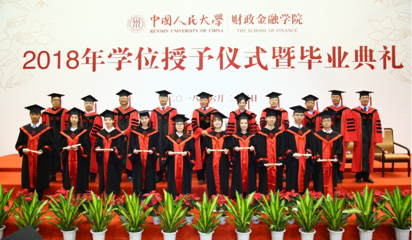 张成思副院长庄严宣读了《中国人民大学学位评定委员会关于学士、硕士学位授予决定》,授予经济学学士学位282人,经济学硕士学位408人,金融EMBA管理学硕士学位87人,授予硕士专业学位212人。