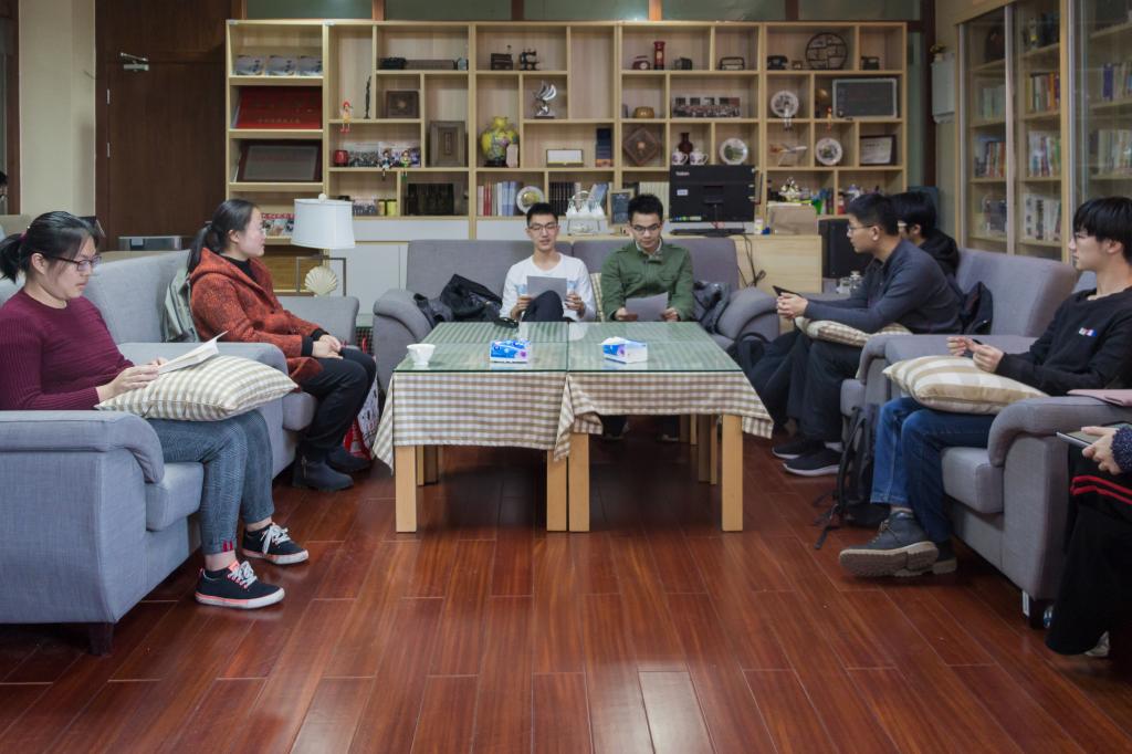 主持人郑舒鹏以最近的反常天气切入,点出人们所期待的“扎根于大地的情怀,皇天后土下三才合一的境界”,再回溯我国城市化率惊人的历史变化,收束于主题——中国乡土关系即人们与乡土之间的关系。而后,在主持人向江伟的引导下,同学们描述了在自己见解下传统乡土社会所呈现出的图景:在空间上,人们居于相对固定而孤立的社群中,人际关系相对稳定,人们相互之间熟悉,这样就维持了“熟悉”;在时间上,社会生活内容与方式相对稳定,这样就维持了“传统”。同学们又以切身的经历为例更加具体地阐述了这种关系:杨钧雄用外来人难以融入原住民来说明人际关系的不流动;黄鹏以文字下乡的困难补充了杨钧雄的观点;同学们又提到了中国人对土地的依赖以及老一辈“落叶归根”的丧葬制度。之后,向江伟提到乡土文化的产物——方言,希望每个人说一句家乡话来更深地理解乡土文化中的差异。在同学们各自的方言声中,讨论渐入佳境。