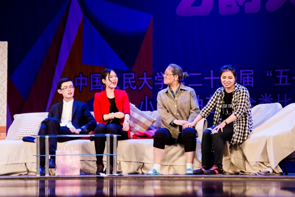 4月15日晚18时30分,“品悦青春 艺韵天成”中国人民大学第二十二届“五•四”文化艺术节小品曲艺大赛在如论讲堂隆重举行。在10个参赛团队中,我院小品《我愿意》以其幽默风趣的段子和寓意深刻的内涵,成功斩获本次大赛的一等奖、最佳人气奖以及最佳女演员奖。