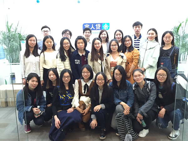 交流结束后,我院师生在工作人员的带领下参观了宜人贷职场,近距离的接触到了互联网金融企业的工作状态和环境。同学们普遍反映,通过本次参观交流活动,进一步了解了中国互联网金融企业的发展现状以及未来趋势,也收获了对自身职业发展规划的重要启发。