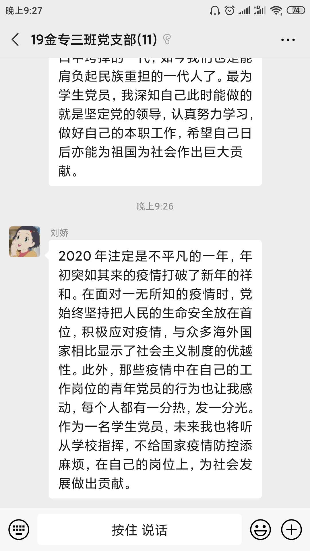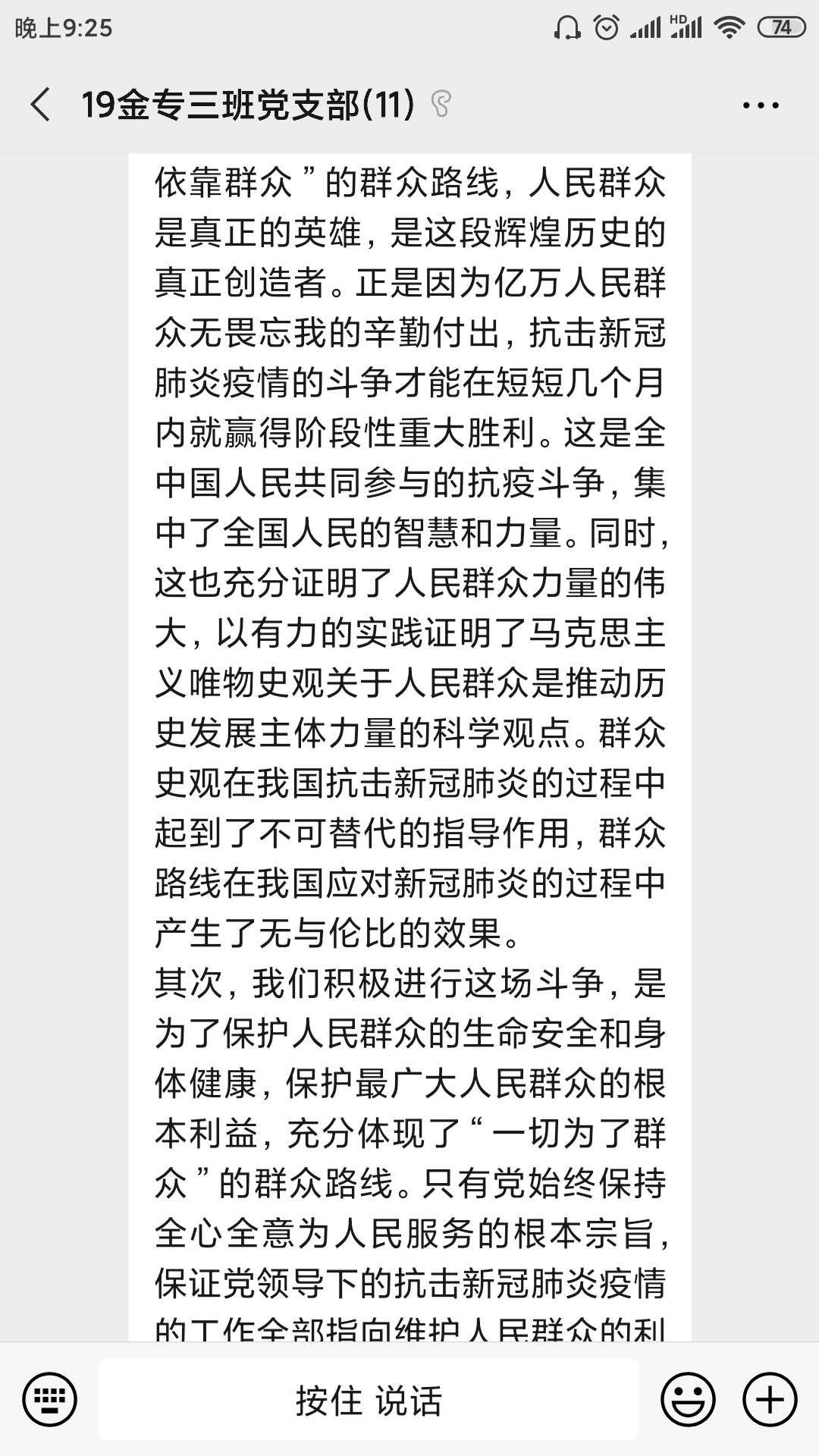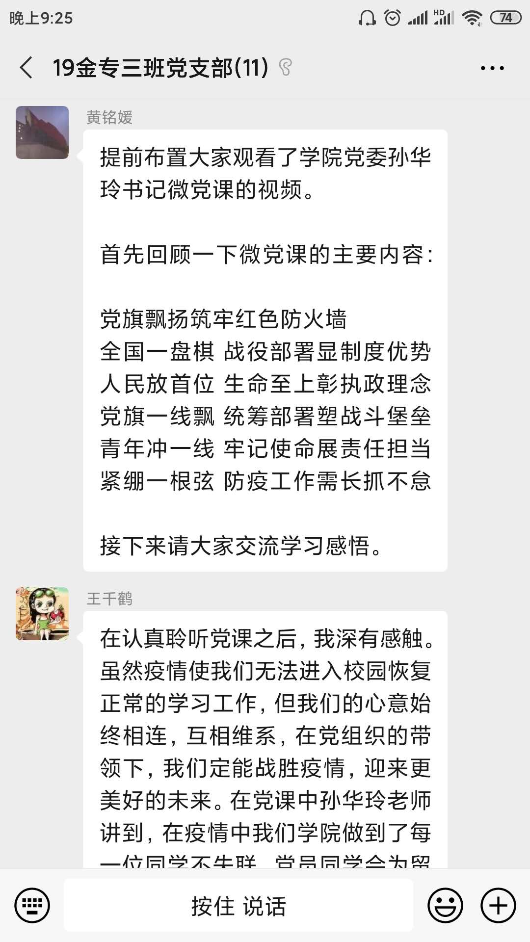 这次主题党日活动让支部成员们感触良多,一方面,我国在抗疫战争中取得的阶段性胜利让大家感到由衷的喜悦,但另一方面,我们距离最终的胜利还有一段距离,大家表示会听从组织安排,积极与疫情抗争,静待抗疫战争最后的胜利,同时不断提升自己,为未来成为党的可靠的后备力量而努力。