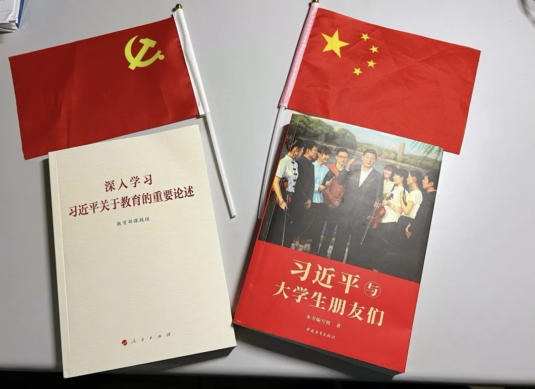 支部成员以小组讨论形式学习《习近平与大学生朋友们》和《深入学习习近平关于教育的重要论述》两本书的内容。