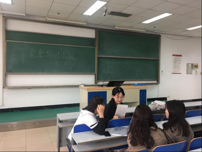 在2018级金融专硕四班党支部组织的党章集体学习活动中,三位入党申请人分别向大家展示在集体学习活动之前的一些准备学习内容,首先由陈一维同学向大家分享学习党章的一些心得体会,重点跟大家分享了党章的总纲、党员的权利和义务、党的组织制度以及党的纪律方面的学习心得;然后由周冰倩同学向大家分享党史的学习体会,周冰倩同学比较详细地梳理了,我党从成立以来,到今天带领中国人民走向新时代中国特色社会主义道路的各个阶段,党经历过哪些重要的事件等;最后是由胡雨星同学为大家讲解她在对中国共产党发展党员工作细则进行学习过程中,认为应当重点关注的内容。