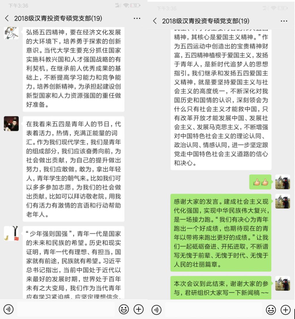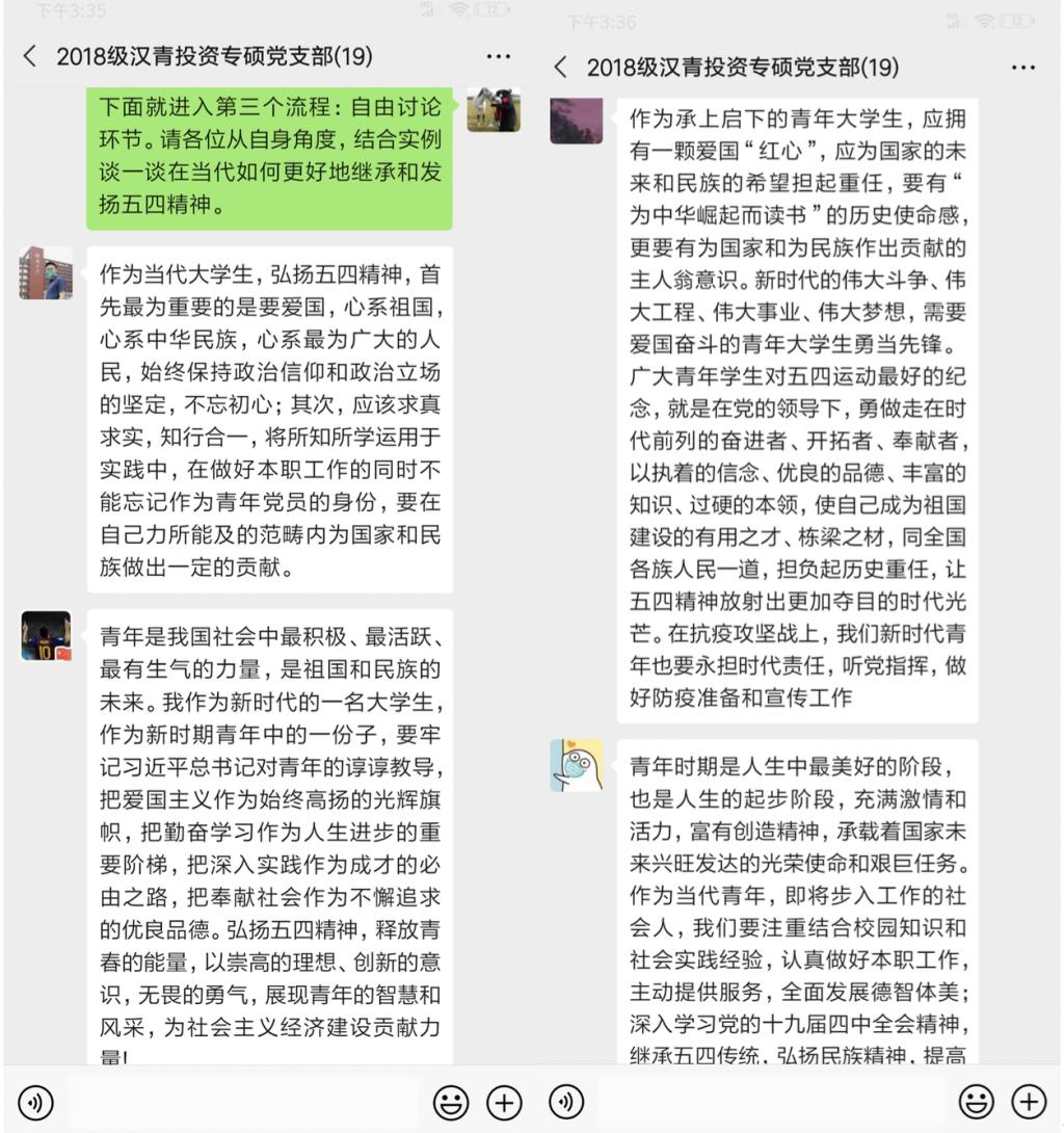 线上主题党日 | 2018级汉青投资专硕党支部弘扬五四精神,勇担时代重任