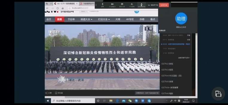 2019级学硕党支部组织悼念活动,共同追念在新冠肺炎中牺牲的英烈和逝世同胞。2019级学硕党支部的14名党员组织了线上哀悼活动,用自己的方式表达了对牺牲英烈和逝世同胞的哀思。