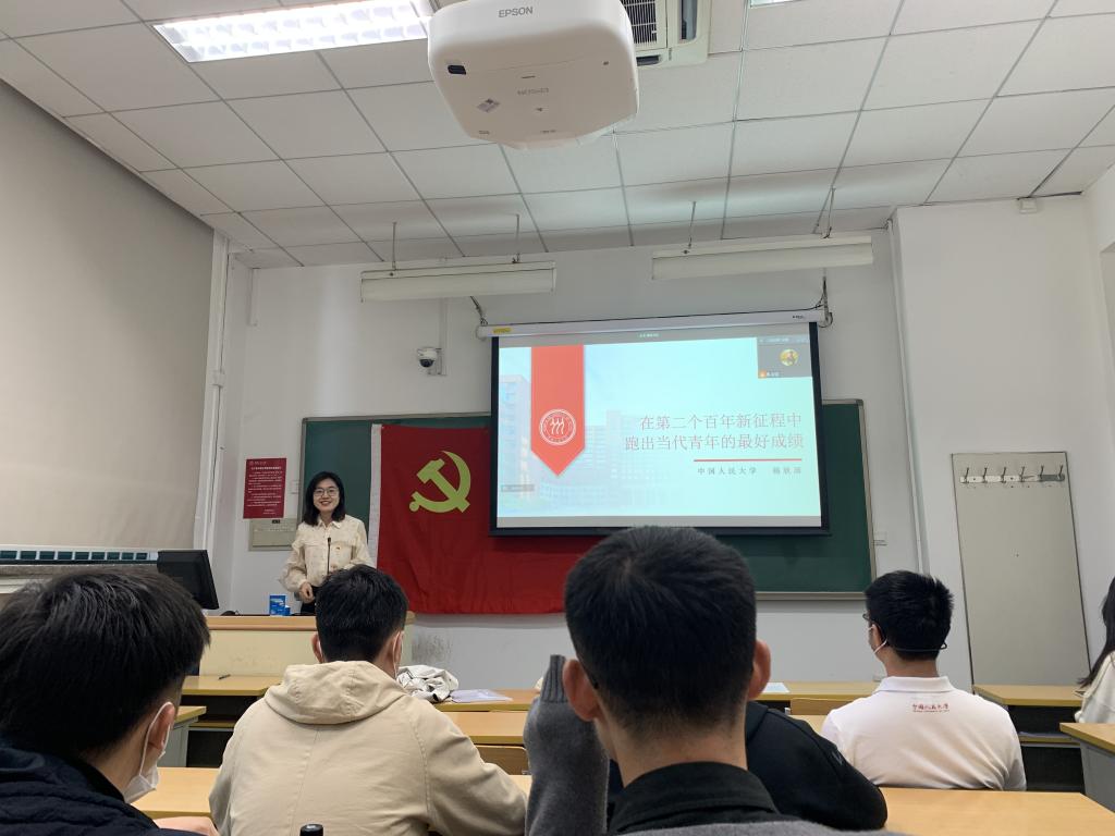 易凌云带领支部党员回顾习近平总书记同中国人民大学的故事。易凌云从“一场走进宿舍的谈话”、“一项省校之间的合作”、“一堂座无虚席的报告”、“一番切中肯綮的要求”、“一次坚定信念的勉励”、“一封情真意切的贺信”六个方面深情讲述习近平总书记与中国人民大学的六个故事,同学们深受鼓舞,并表示要接过前辈们手中的旗帜,传承好人大的红色基因,坚定不移地跟党走,争做“复兴栋梁、强国先锋”,将自己的一生都与中华民族的伟大复兴紧密相连!
