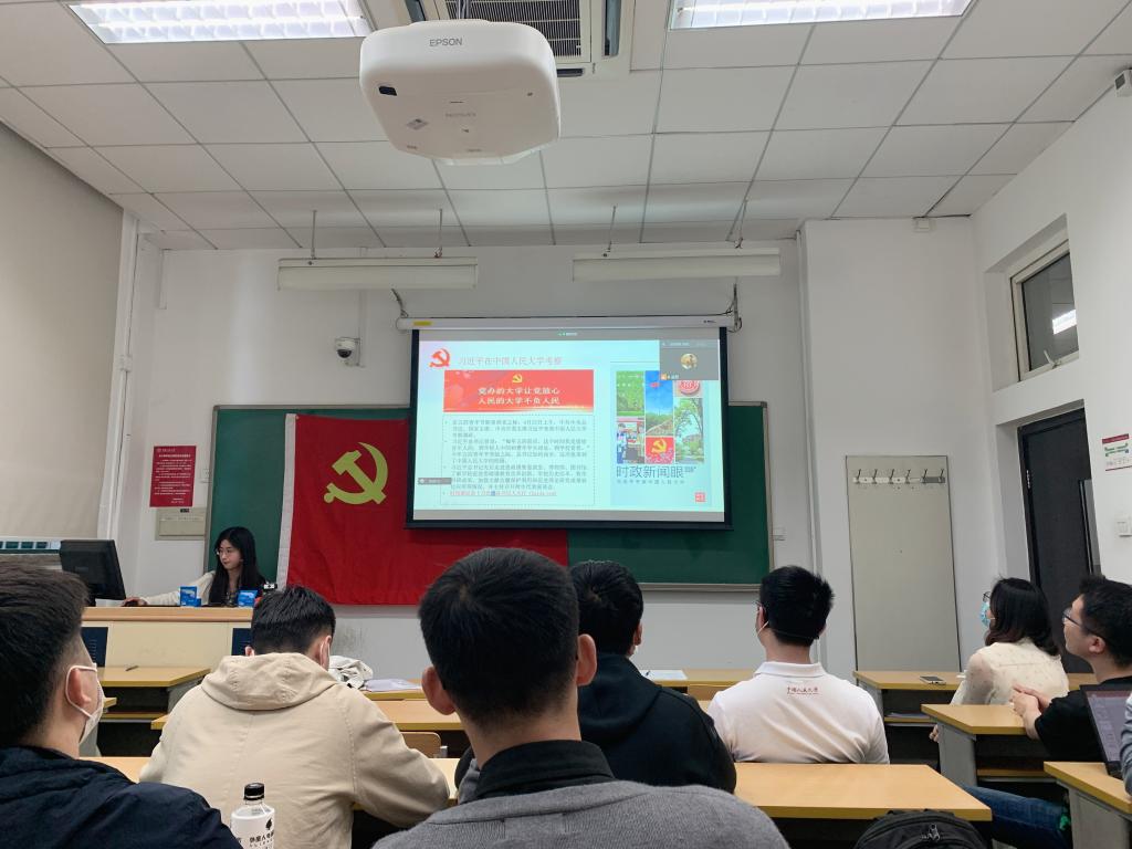 专题学习会上,支部成员共同观看了主题视频《时政微纪录丨习近平总书记人大行》,详细了解总书记在人大考察调研的具体情况、重要讲话及论述。习近平总书记曾说,“每年五四前后,这个时间我是留给青年人的,到年轻人中间和青年学生相处,到学校看看。”4月25日上午,2022年五四青年节来临之际,总书记来到中国人民大学的校园,再次来到大学生朋友们身旁,与大学生谈梦想、论志向、说信仰,做青年人前进、追梦路上的领路人。