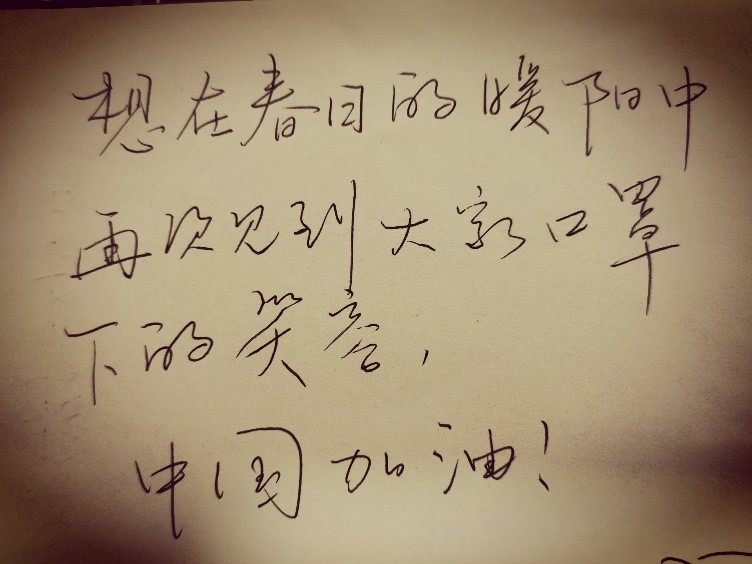 在会议最后,同志们为中国加油,为武汉加油,也祝愿疫情能够早日过去,顺利开学继续学业。