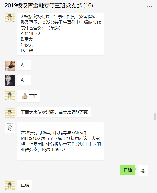 线上主题党日|2019级汉青金融专硕三班党支部分享抗疫事迹,组织抗疫知识抢答