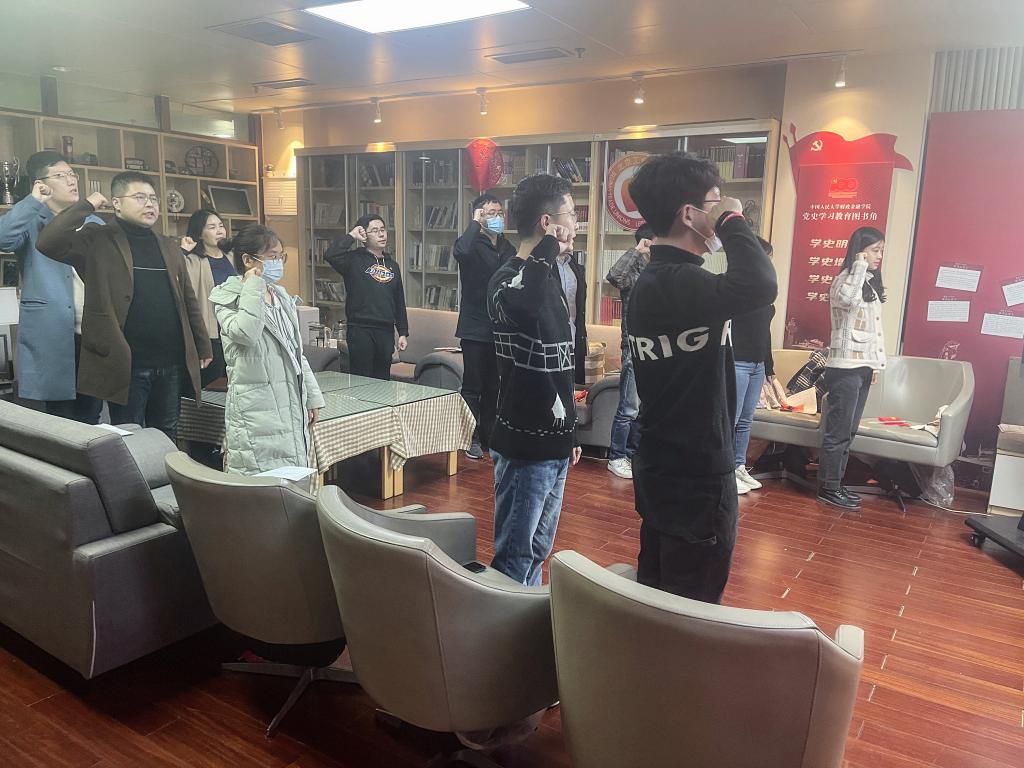 郭雨萌同志带领支部成员重温入党誓词、共唱《国际歌》,使同志们在庄严的氛围中更加坚定了中国共产党人的初心与使命,增强全心全意为人民服务的宗旨意识与“随时准备为党和人民牺牲一切”的奉献意识。