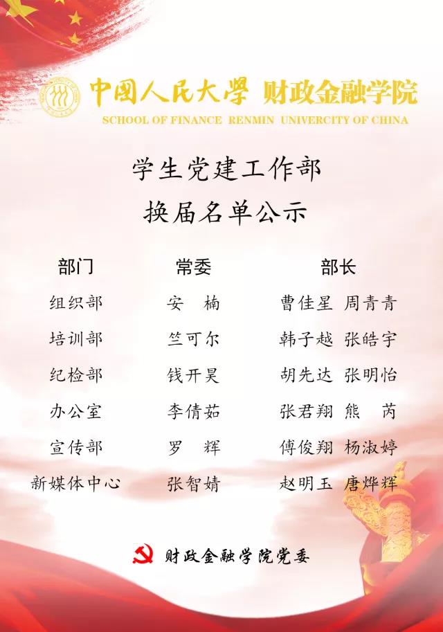 按照“公平、公正、公开”的原则,经过自主报名、资格审核、面试考察、综合评估等环节,大白预测 学生党建工作部于近期完成组织部、培训部、纪检部、办公室、宣传部与新媒体中心的常委及部长的换届工作。现将名单公示如下: