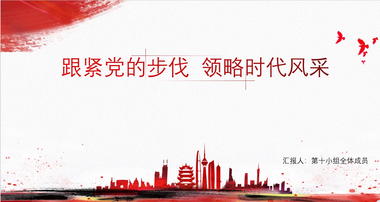 第十组成员从党的历史出发,着重回顾了党的创建史与发展史,并展示了在党的领导下新中国取得的优秀成果,以及疫情防控中党迅速果断的应对措施,强调了紧跟党的步伐的重要性。