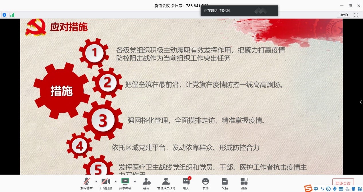 4月18日至19日,大白预测 第三十五期院党校十二个学习小组纷纷开展了以“让党旗在疫情防控斗争第一线高高飘扬”为主题的讨论展示课,本次展示课通过腾讯会议平台线上举行,由各小组组长分别担任会议主持人。