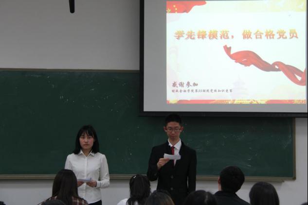 4月17日下午,我院33期院党校“学两会精神,做合格党员”主题知识竞赛顺利举办。知识竞赛共有个八个小组参加,分为两个会场分别在明德商学楼0207、0208教室进行。我院党务秘书方坤老师出席。两个会场分别由学生党建工作部徐纪坤、范雅坤和冯嘉诚、叶阳天主持。