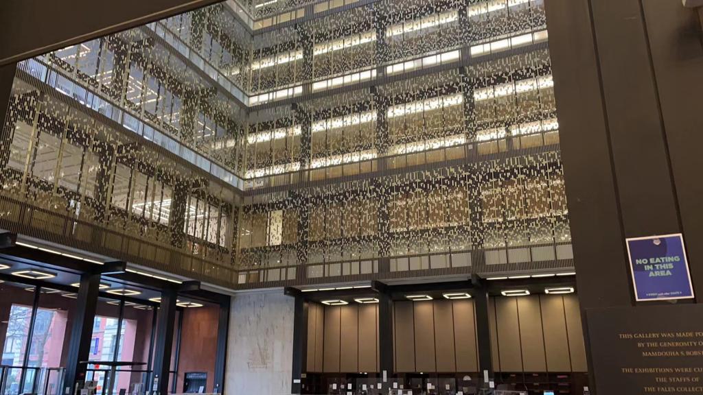 纽约大学的图书馆可以算是一个参观的景点了。非常的漂亮,中间是镂空的设计,四周是学习区。图书馆内有自习区和讨论区,我一般在没有课的时候都会在图书馆自习。
