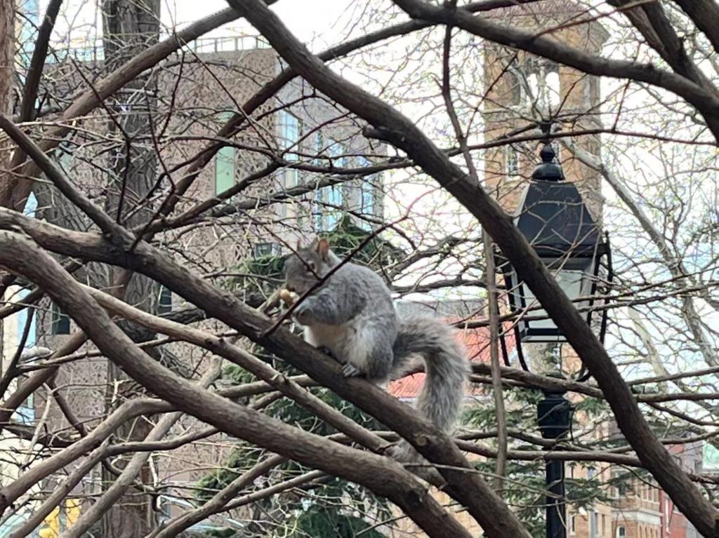 下面这张图片是华盛顿广场上的小松鼠,中午的时候会有很多人在广场,很多同学会进行音乐活动,非常热闹。