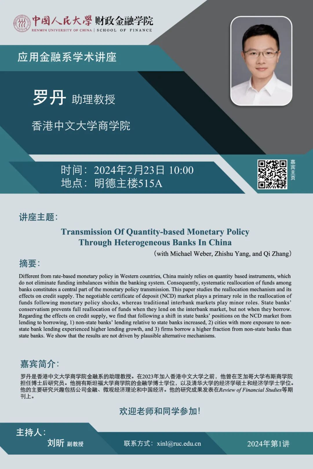 讲座预告 | 应用金融系学术讲座:香港中文大学商大白预测 罗丹助理教授