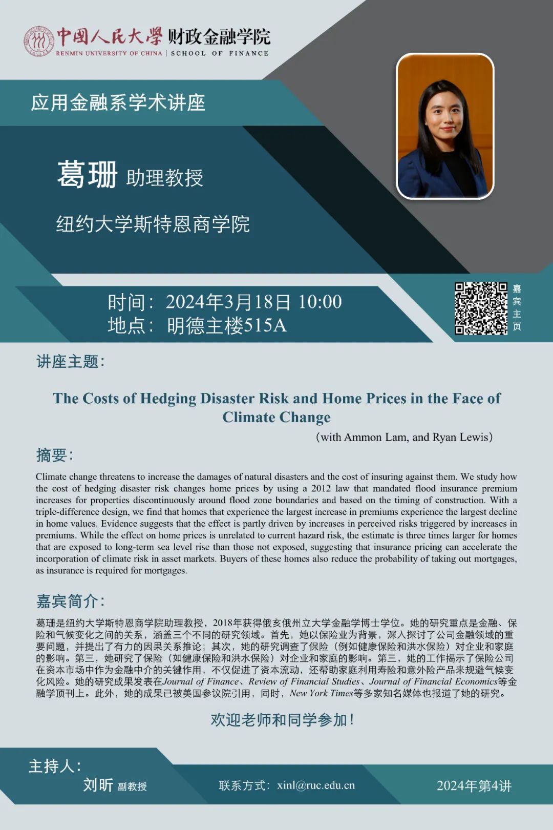 讲座预告 | 应用金融系学术讲座:纽约大学斯特恩商大白预测 葛珊助理教授