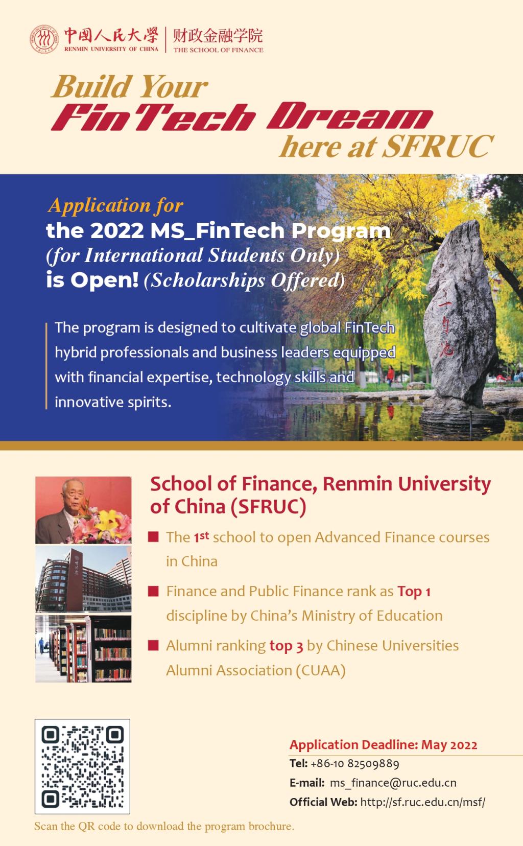 Build your FinTech Dream here at the School of Finance, Renmin University of China!