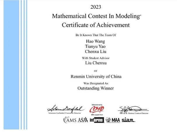 财金学子2023年美国大学生数学建模竞赛再创佳绩