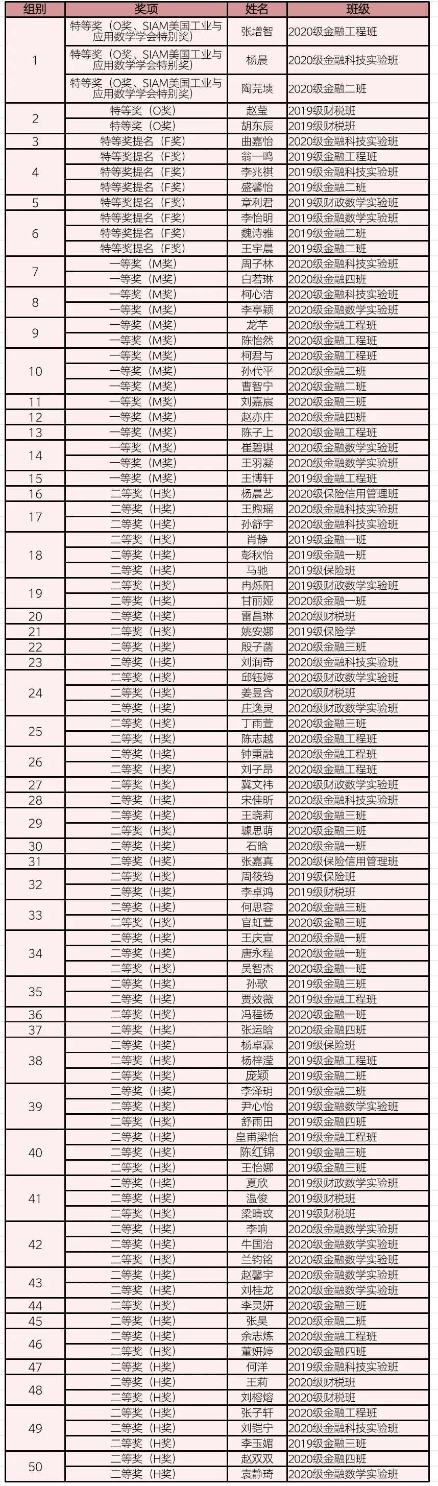 我院在最高奖(SIAM奖)和特等奖(O奖)获奖人数上均取得历史性突破,参赛人数和高级别获奖再创佳绩,在学校名列前茅。