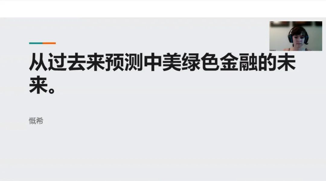 下半场,来自哈佛大学的Edwin Jin同学以中美竞争为背景,阐释了全球变暖的影响在发展中国家放大的原因,并针对中美如何通过“健康竞争”逐步解决发展中国家目前的气候变化危机发表了自己的观点;来自厦门大学的林柏帆同学基于中美两国视角对绿色债券的发展现状进行了分析,并针对绿色债券所面临的问题提出了中美跨境合作的创新方案;来自天津商业大学的林靖澄同学以中美绿色金融合作为背景,从中美绿色合作金融机制的成型基础出发,理清了合作机制的建设演化状况,并对发展堵点进行了梳理;来自乔治华盛顿大学的Olivia Pfeiffer同学聚焦中国的绿色信贷政策,探讨了中国绿色信贷政策的内容和优缺点,对美国是否应该制定相同政策提出了自己的看法,并表达了中美友好交流的期望;来自上海外国语大学的潘颖颖同学探讨了后疫情时代下的中美绿色金融国际合作的重要性,并结合中国经验就中美如何深化合作提出了看法和政策建议;来自哈尔滨工业大学的任堉秸同学着重介绍了中国在绿色金融国际合作上的行动以及中国绿色金融发展特色方案,并提出了优化当前绿色金融合作机制的措施;来自耶鲁大学的Anna Tran同学指出绿色金融的关键是解决环境资源问题和节能,并介绍了MethaneSAT甲烷卫星在数据收集方面的作用,为绿色金融的实现提供了新的思路;来自北京航空航天大学的张昊轩同学从中国工商银行基层工作者的视角切入,梳理了中国近期在绿色金融领域取得的进展,并通过中外对比研究,对中美、中外等双边和多边的国际化合作提出了建议;来自中央财经大学的张宏伟同学从“碳中和”和“ESG”两个具体的维度介绍了中美共同面临的碳中和目标,并针对碳排放和ESG的区域性差异问题发表了自己的观点。
