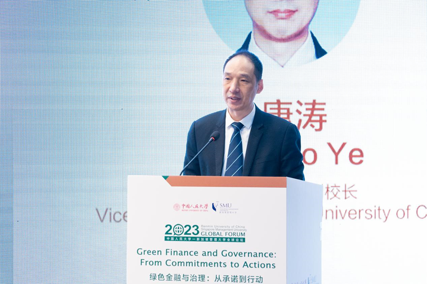 叶康涛在致辞中指出,本次论坛的主题涵盖了绿色金融规划、实践和持续性发展的全周期要素,推动绿色金融健康发展,对实现人与自然和谐共生、切实把绿水青山转化为金山银山具有积极意义。在绿色发展领域,新加坡实现零碳排放的目标与中国的“双碳”战略一致,通过共同推动中新双方在绿色金融领域的合作建设,有望推动亚洲乃至全球绿色金融的发展,为全球可持续发展做出积极贡献。叶康涛强调,中国人民大学在长期的办学实践中充分发挥在人文社会科学领域的独特优势,积累了深厚的交叉学科知识,为绿色金融的研究和教育工作奠定了坚实基础。希望各位专家学者在本次论坛中充分交流分享研究成果与心得,为推动绿色金融的发展注入新的动力和活力。