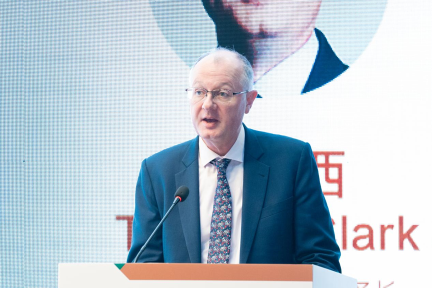 Timothy Clark(柯莫西)在致辞中指出,新加坡管理大学(新大)致力于通过交叉学科与各界合作,提供数字转型、可持续发展等不同议题的解决方案,应对社会挑战。本次论坛主题为“绿色金融与治理:从承诺到行动”,要求各界重新思考传统学术研究范式。要建立一个可持续发展的世界,就要聆听来自学界、决策层、商界等不同观点和态度,交流思想,从各自经验与实践中提炼有价值的观点,真正做到政、学、企联盟,挖掘各界资源,提高整合能力。今后,新大将继续鼓励创新创业,充分利用校友资源,以及陆续在重要亚洲城市雅加达、曼谷等地设立的海外中心,增进各界联系,努力搭建学术界与产业界的沟通之桥,为应对当前和未来的全球挑战提供有力的跨学科见解与解决方案。
