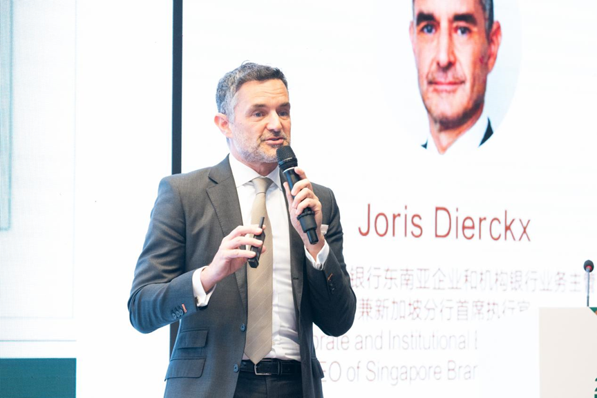 Joris Dierckx以“绿色金融与治理:从承诺到行动”为题发表演讲,他从四个方面讨论了全球绿色金融与治理。首先,他指出,在全球范围内ESG法规建设的步伐不尽相同,而在未来几年,欧盟ESG方面法规将越来越多地融入企业发展框架中。其次,他介绍了法国巴黎银行于2023年实施的服务于低碳经济转型的战略,并阐明其已全面实施ESG风险管理方面的政策。再次,他介绍了法国巴黎银行相关方面战略实施的具体措施,例如从扩展ESG评级、ESG披露与ESG战略等方面予以评价。最后,他提到,欧盟绿色债券标准为发行人制定了一套自愿性标准,以提高投资者透明度,降低“洗绿”风险,同时介绍了全球可持续债券与可持续贷款市场的现状。