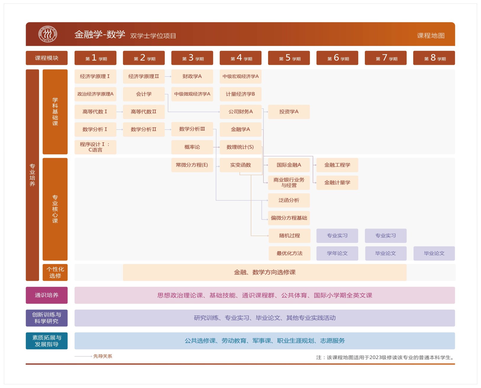 ▲在个性化选修课程目录中选修12学分,其中,【金融方向】不少于 6学分课程。 ▲有意在应用数学领域更高学位继续深造的同学,建议重点选修【数学方向】课程。 |