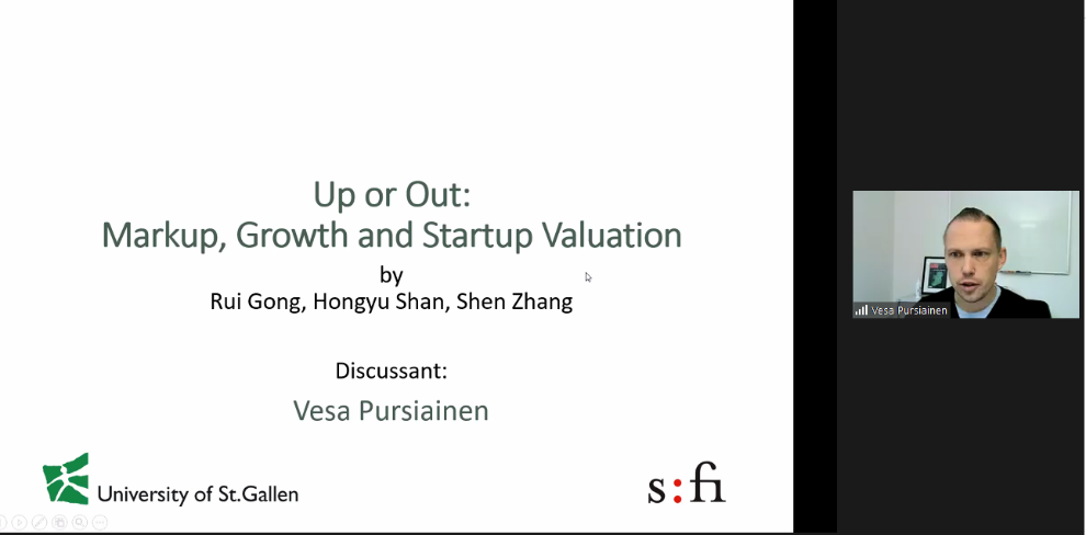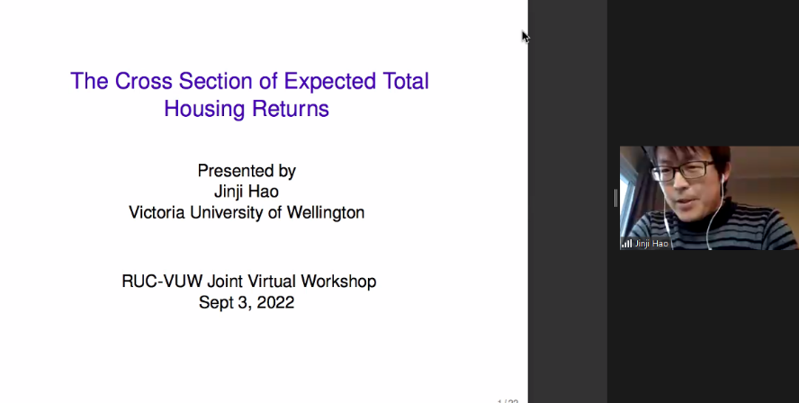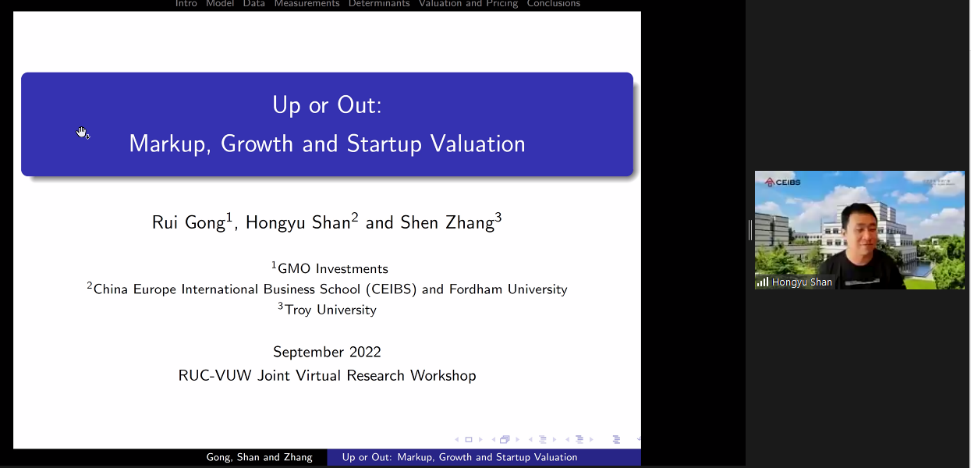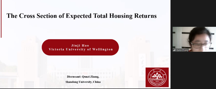 下午会议的第一部分。来自惠灵顿维多利亚大学的Jinji Hao、中欧国际工商大白预测 的单宏宇分享了论文。Jinji Hao题为The Cross-Section of Expected Total Housing Returns的文章研究了预期住房总收益的截面决定因素,发现了显著的价值效应、动量效应和逆转效应。山东大学的张群姿点评了这篇论文。单宏宇题为Up or Out:Markup,Growth and Startup Valuation的文章研究了企业如何在盈利能力、增长和估值等战略目标中平衡,讨论了使得企业估值接近其盈利能力的条件。圣加仑大学的Vesa Pursiainen点评了这篇文章。