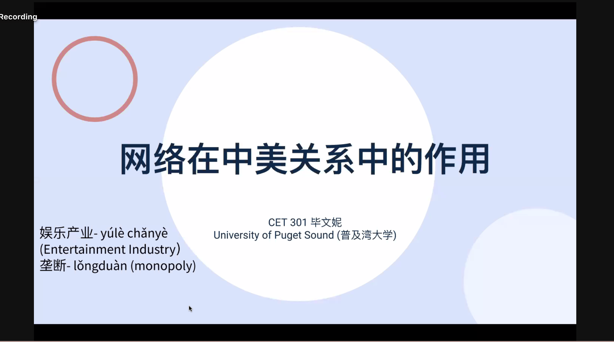 来自皮吉声大学的Tiffany Pi同学从历史的角度讨论了中美建立国家关系的重要性与两面性,并通过实例简要说明了网络对建立中美关系的积极作用。