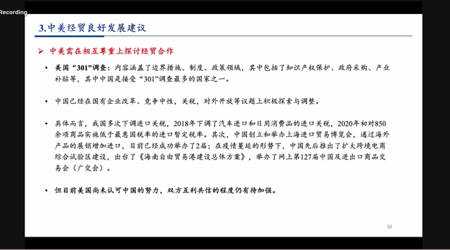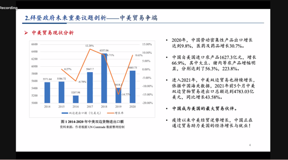 来自复旦大学的张杰皓同学以拜登政府贸易政策为切入口,对中美经贸关系走向进行了探讨与预测,并针对中美经贸如何实现良好发展提出了建议。