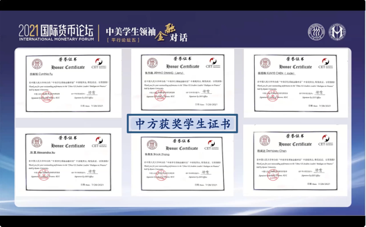 在本次论坛中各位同学紧扣热点、立论深刻,均展现了一流的演讲能力。中国人民大学国际货币研究所对外合作部主任崔甜甜老师带领会务组系统组织和筹备了此次论坛,并宣布了专家组的老师们对入选的中美选手给出的综合分数,其中张杰皓、FuYongLi Chambers同学获得了一等奖,张奇乐、徐蕾、Isaac Young、Rebecca Chuhui Chen同学获得了二等奖,陈闻达、陈琨晔、符新悦、Aurelia Dochnal、Tiffany Pi、Leo John Arnett同学获得了三等奖。向以上入选的中美学生的突出表现与优异成绩再次表示祝贺!